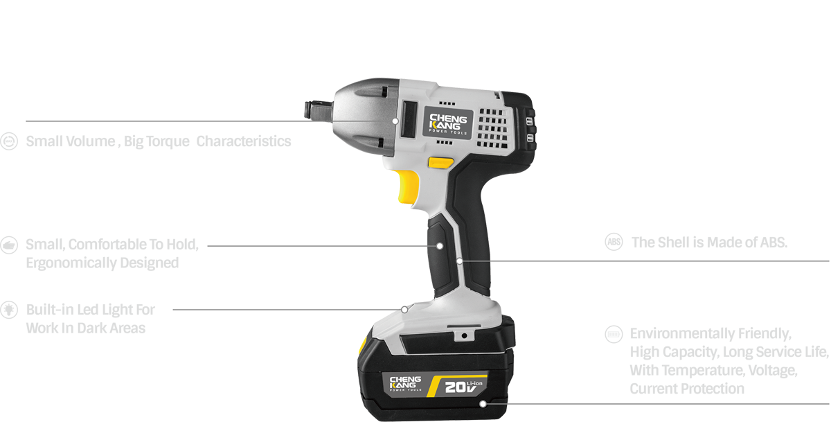 Model Voltage Rating for Charger No load speed Impact rate Battery voltage Rating Charge current Battery capacity Tool holder Max torque Net weight Machine Length size Packing Battery and Charger models | CWL1803 100-240V/50-60Hz 0-2200RPM 3200BPM 20V 6A / 3.5A Li-ion 3.0AH 1/2" Square Drive 250N.M 1.92kg 173mm BMC BTL1801/CTL2101 |